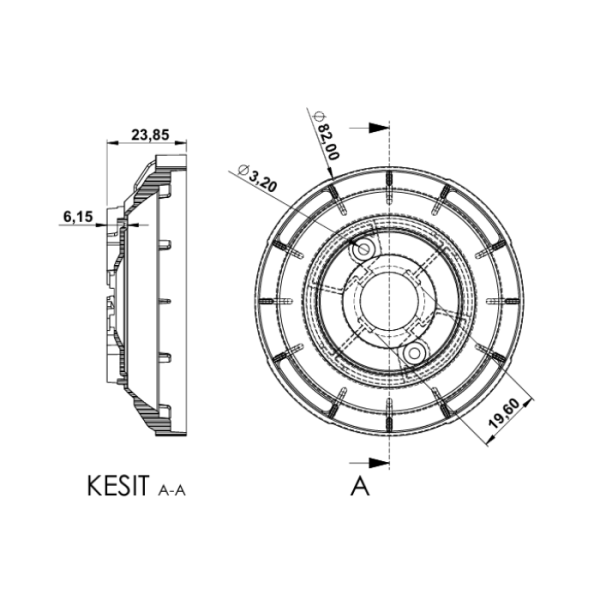 LC19 mm CoB LED’ler içindir. CKMQ7024D , CKMQ7036D , CKMQ7060D Lensleriyle uyumludur. Lensleri harici bir çerçeve kullanıp arada sıkıştırarak tutar.